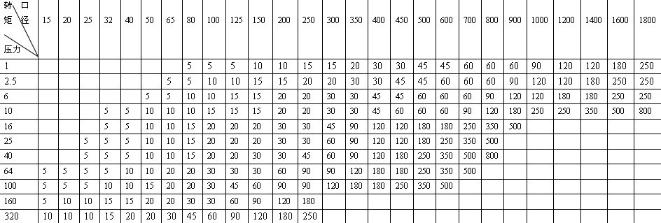 據(jù)各種閥門開關(guān)力矩以及執(zhí)行器的輸出力矩,得出以下選型表。