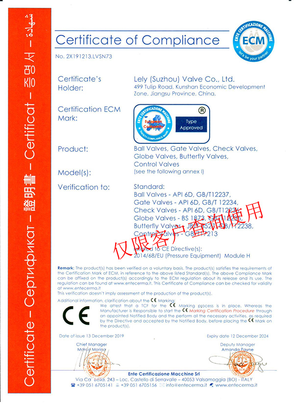 雷力脫硫蝶閥廠家已于2019年12月成功通過(guò)CE認(rèn)證,順利拿到CE認(rèn)證證書,這標(biāo)志著我們除了質(zhì)量合格我們的安全也是合格標(biāo)志,我們深知閥門的質(zhì)量安全在項(xiàng)目上有多么的重要,未來(lái)我們也會(huì)一直將安全放在第一位,始終堅(jiān)持安全生產(chǎn),堅(jiān)持用科技讓流體輸送更安全的使命。